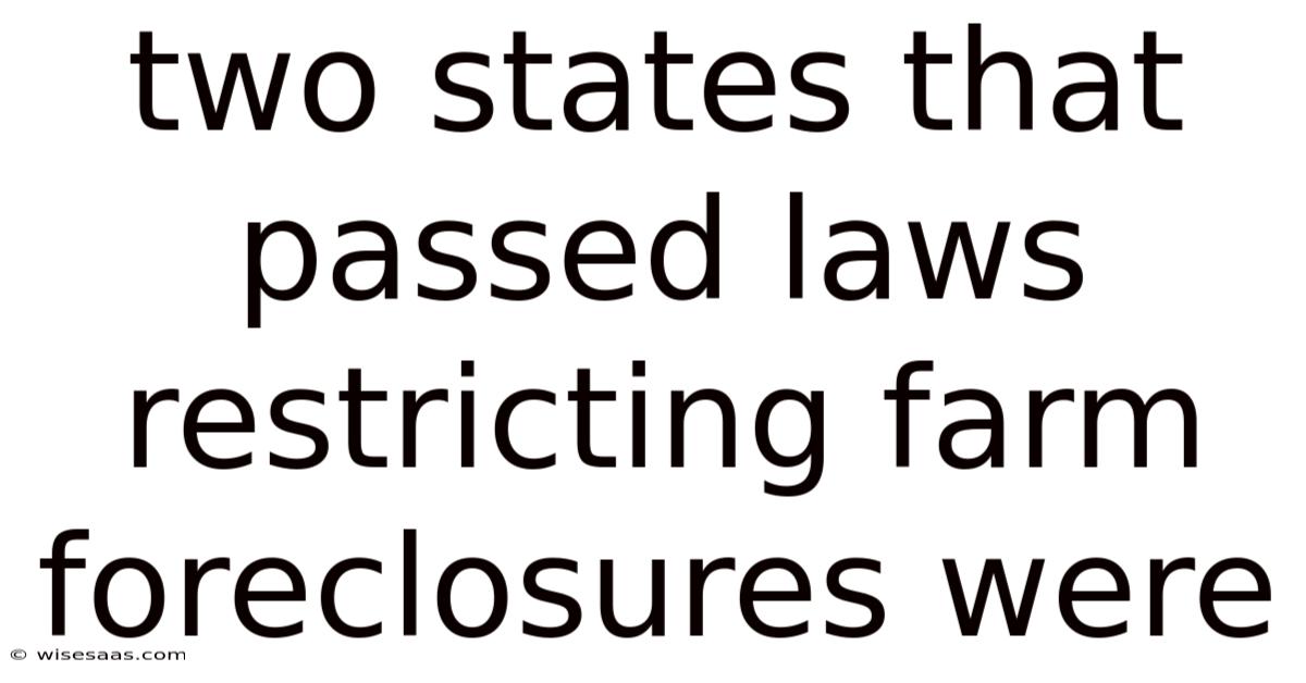 Two States That Passed Laws Restricting Farm Foreclosures Were