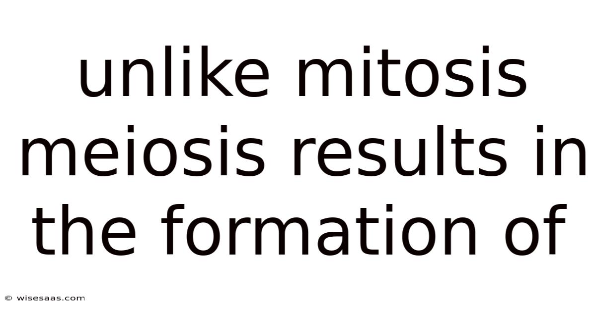 The phrase unlike mitosis meiosis results in the formation of encapsulates a profound biological truth: meiosis is the engine that converts diploid cells into haploid gametes, imbuing them with genetic novelty essential for species survival. By halving chromosome numbers, shuffling genetic material, and generating diverse offspring, meiosis sustains the dynamic interplay of variation and selection that drives evolution. Understanding this process not only satisfies scientific curiosity but also illuminates the origins of human diversity, health, and adaptation And that's really what it comes down to. Less friction, more output..