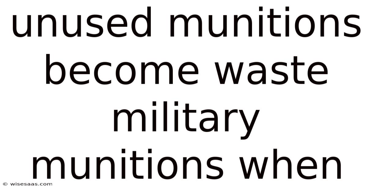 Unused Munitions Become Waste Military Munitions When They Lose Operational Viability or Pose Safety Risks