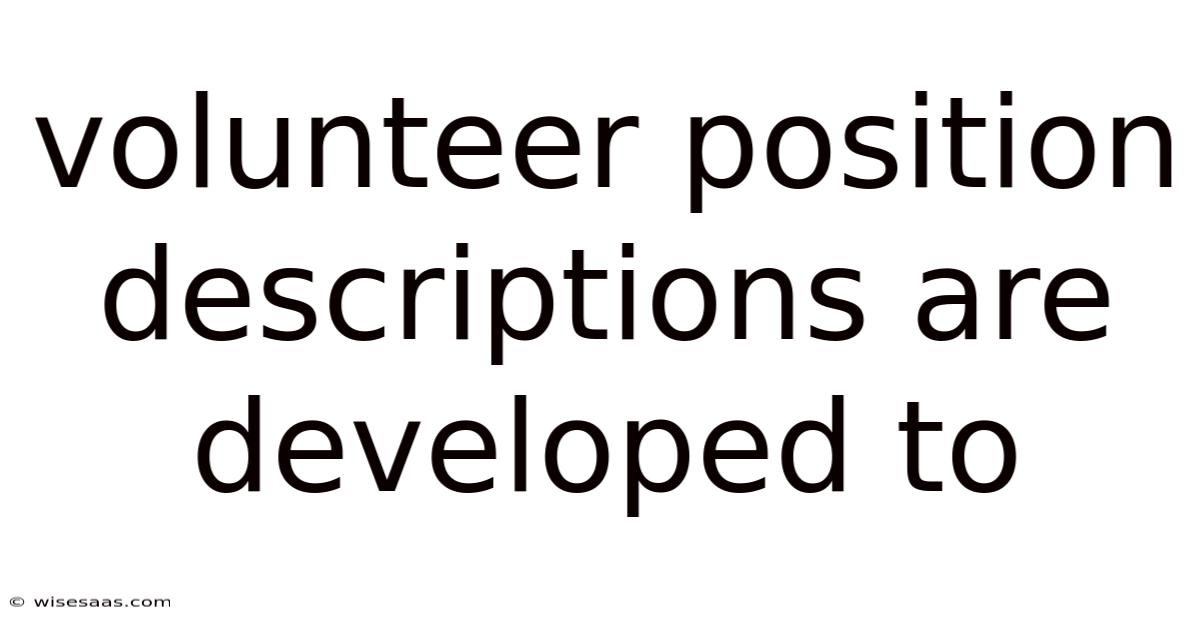Volunteer Position Descriptions Are Developed To: A Strategic Blueprint for Impact and Retention