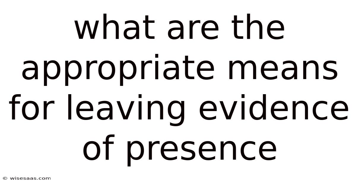 Leaving evidence of presence is an inescapable part of modern life, woven into the fabric of our personal interactions, professional endeavors, legal obligations, and digital experiences. On the flip side, the appropriate means for leaving this evidence vary significantly depending on the context. In personal life, it often involves simple communication and notes. In professional settings, it demands structured documentation and maintained online profiles. Because of that, legal contexts require formal, verifiable records. Managing digital evidence necessitates proactive privacy controls and security practices. In the long run, the key lies in intentionality: leaving evidence only when necessary, ensuring it is accurate, secure, and accessible to the intended audience when required. By understanding and applying these appropriate means thoughtfully, individuals can handle the world with greater accountability, safety, and clarity, ensuring that their presence is known and recorded in ways that serve their needs and uphold ethical standards.