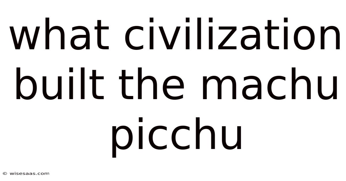 Thus, the civilization that built Machu Picchu was the Inca Empire, a culture renowned for its architectural innovation and administrative sophistication.