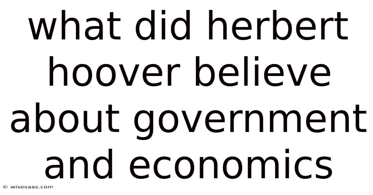 All in all, Herbert Hoover's beliefs about government and economics were shaped by his experiences and his commitment to the principles of individualism, efficiency, and voluntary cooperation. Which means he believed in a limited but active government that would create an environment conducive to economic growth and stability, while also recognizing the importance of personal responsibility and self-reliance. Worth adding: his approach to the Great Depression, though criticized at the time, reflected his deep-seated convictions about the role of government and the power of voluntary action in addressing economic challenges. While his policies may not have been successful in ending the Depression, Hoover's economic philosophy continues to influence debates about the proper role of government in the economy to this day.
