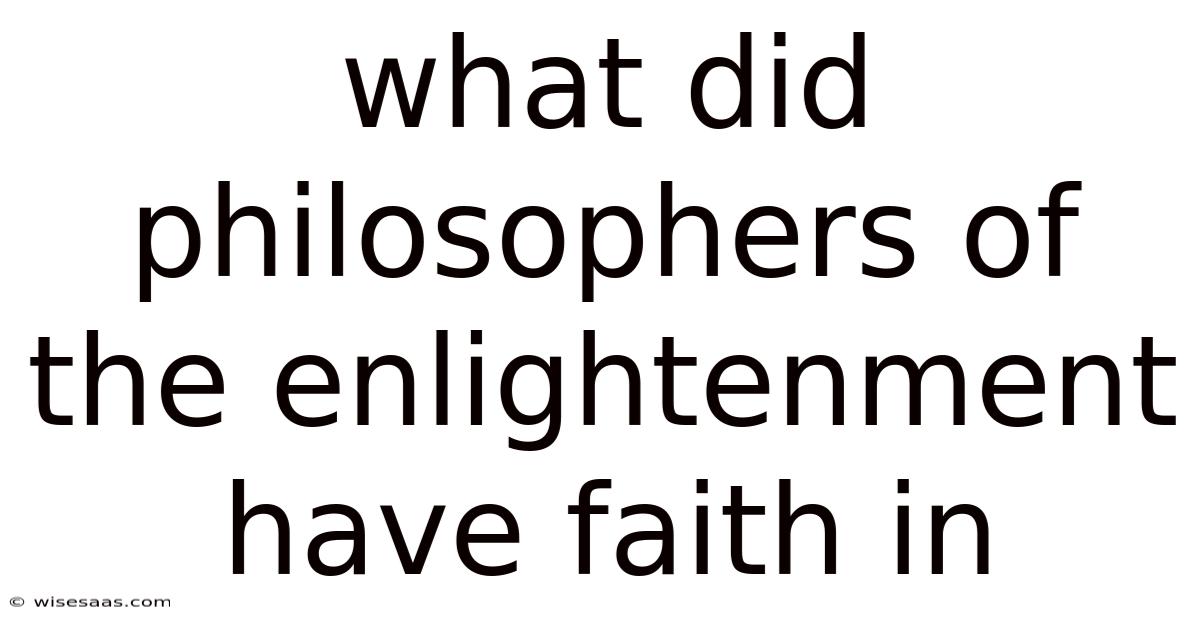 What exactly did Enlightenment philosophers “have faith in”? They placed their confidence in reason, human progress, and natural rights, believing these forces could guide humanity toward greater knowledge and moral improvement.