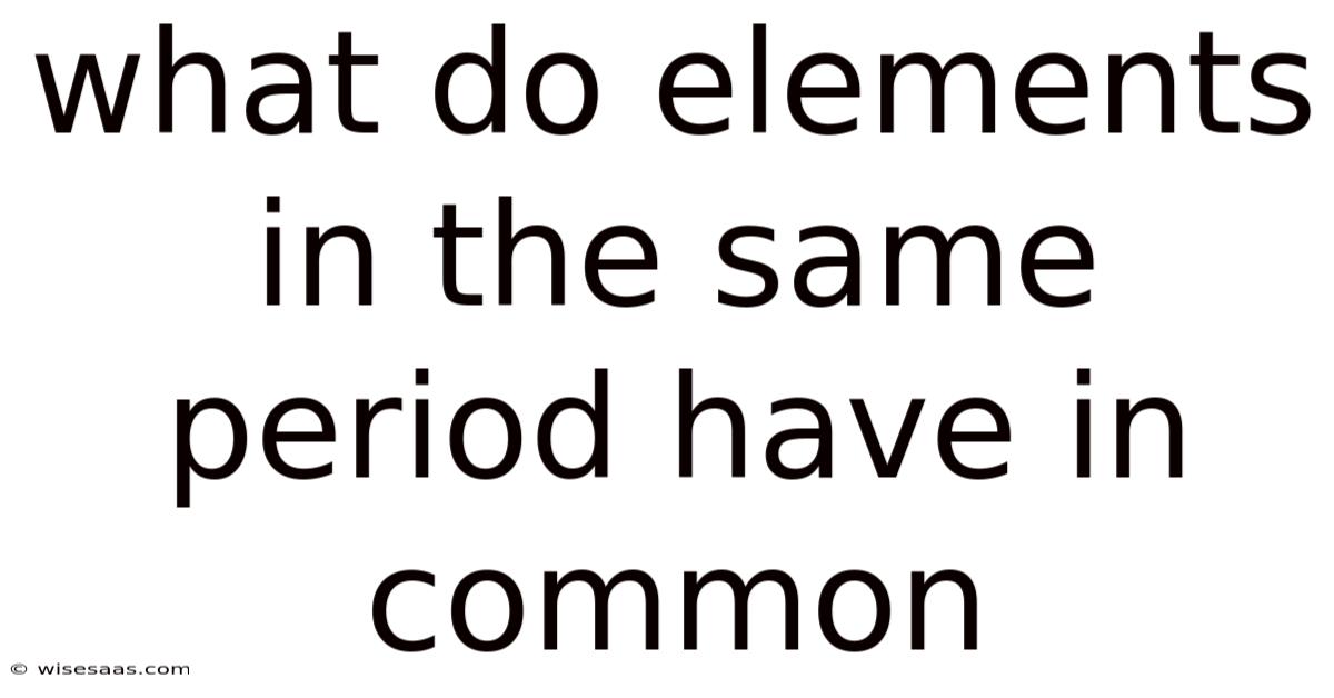 Elements that share the same period inthe periodic table exhibit similar patterns in atomic radius, ionization energy, and electronegativity, which helps answer the question of what do elements in the same period have in common. This opening paragraph serves as a concise meta description, summarizing the core idea: across a horizontal row, electrons fill the same principal energy level, leading to predictable trends that differentiate one period from another while creating consistent chemical behavior within each period That's the part that actually makes a difference..