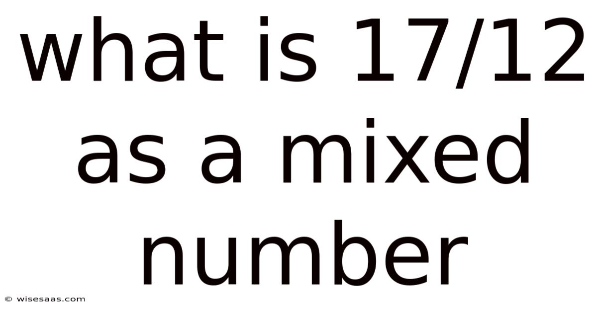 What is 17/12 as a mixed number? Converting the improper fraction 17/12 to a mixed number yields 1 ⅔, which is the mixed‑number form of the fraction. This article walks you through the concept, the conversion process, and the practical reasons for using mixed numbers, all while keeping the explanation clear and engaging Simple, but easy to overlook. Turns out it matters..