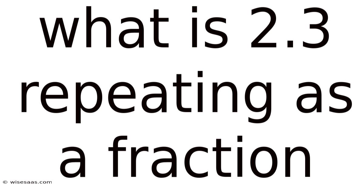 When we encounter a decimal that repeats, it signals a specific pattern in its digits. Consider this: this repetition is what makes the number non-terminating and essential to understand for accurate calculations. Because of that, the number 2. 3 repeating indicates that the digit 3 continues indefinitely after the decimal point. To transform this repeating decimal into a fraction, we need to apply some fundamental mathematical principles Surprisingly effective..