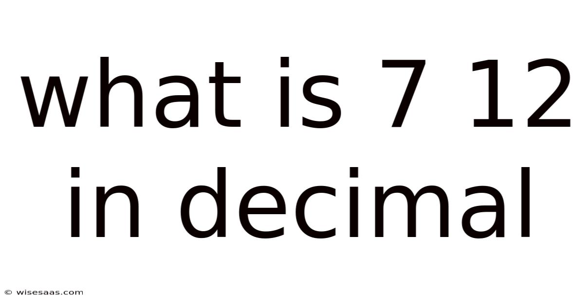 When encountering the phrase "7 12 in decimal," many people might feel confused about its exact meaning. Is it a fraction, a mixed number, or something else? The ambiguity of this term often leads to questions about how to convert it into a decimal format. In this article, we will explore the possible interpretations of "7 12" and provide a clear, step-by-step explanation of how to express it in decimal form. Whether you are a student, a professional, or someone simply curious about numbers, this guide will help you grasp the concept thoroughly But it adds up..