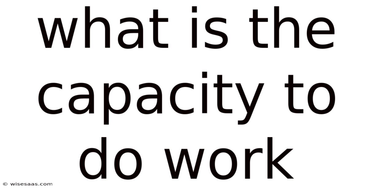 The phrase capacity to do work is a fundamental concept in physics that describes the ability of a system to transfer energy and produce measurable effects. In everyday language we often hear people talk about “having the capacity to get things done,” but in scientific terms this capacity is quantified as energy—the quantity that determines how much work a system can perform. Which means grasping this idea not only clarifies basic mechanics but also illuminates how engines, batteries, and even living organisms operate. This article explores the definition of work, the role of energy as its capacity, the distinction between energy and power, and the practical implications across engineering, technology, and daily life Practical, not theoretical..