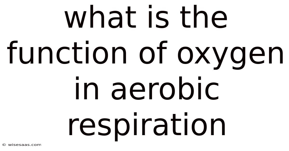 At the very heart of nearly all complex life on Earth lies a simple, yet profoundly powerful molecule: oxygen. Without oxygen’s unique chemical properties, the efficient production of adenosine triphosphate (ATP)—the universal energy currency of cells—would cease, fundamentally altering the biology of every animal, plant, and fungus. Its most critical function is to serve as the final, indispensable electron acceptor in the process of aerobic respiration, the metabolic pathway that converts food into usable cellular energy. This article will definitively explain the precise function of oxygen in aerobic respiration, moving from a broad overview to the complex molecular dance where it plays its starring role Surprisingly effective..