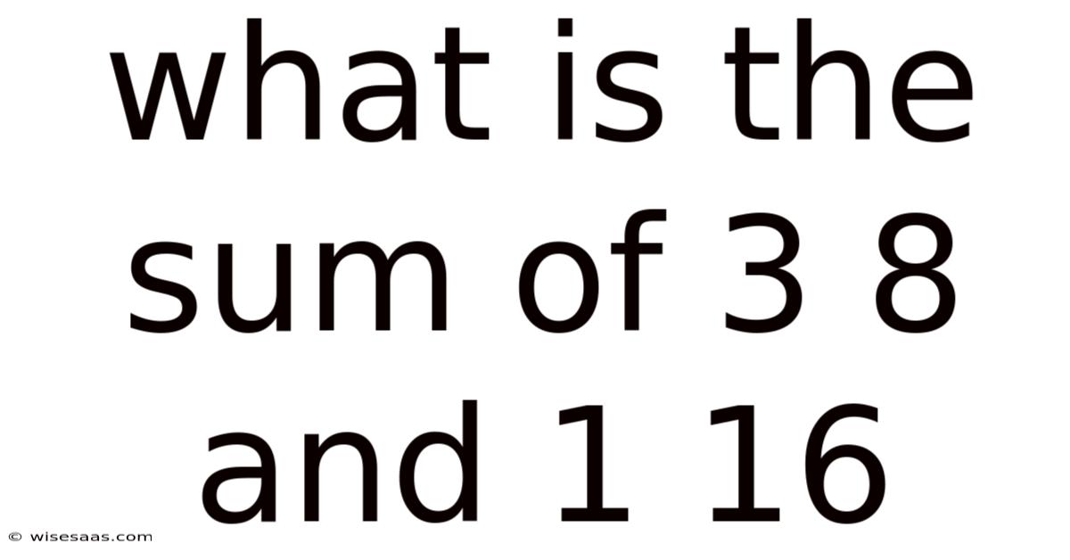 When asked to calculate the sum of "3 8" and "1 16," the first step is to clarify the notation. That said, in most mathematical contexts, especially in educational settings, this notation is often interpreted as decimal numbers. Take this: "3 8" could mean 3.The phrasing "3 8" and "1 16" can be ambiguous, as it might represent mixed numbers, decimals, or fractions. On top of that, 8 (three and eight tenths), and "1 16" could mean 1. Also, 16 (one and sixteen hundredths). That's why this interpretation aligns with common practices in arithmetic problems, where spaces are used to separate whole numbers from decimal parts. The goal of this article is to explore the process of adding these two numbers, explain the underlying principles, and address common questions or misconceptions.