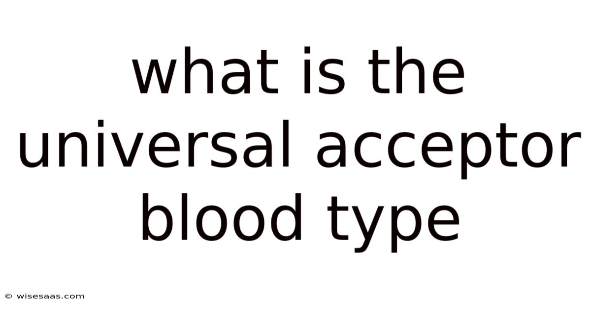 The universal acceptor blood type is AB positive. Individuals with this blood type possess both A and B antigens on their red blood cells and lack anti-A and anti-B antibodies in their plasma. Because their immune system does not produce antibodies against A or B antigens, they can theoretically receive red blood cells from any ABO group without immediate rejection.