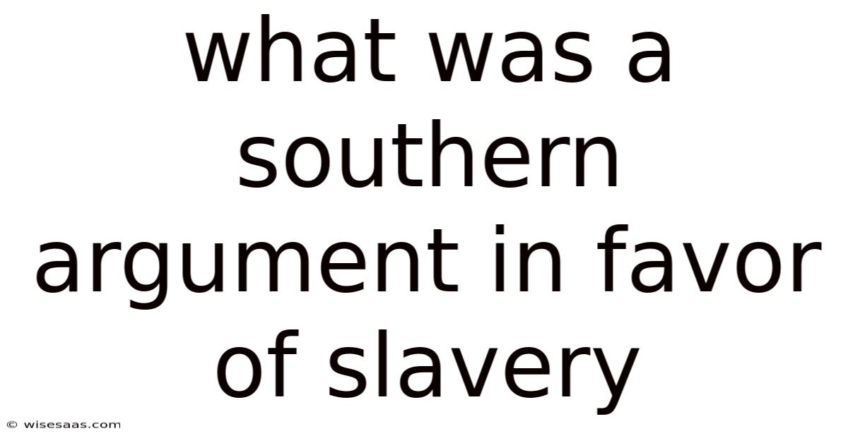 What Was a Southern Argument in Favor of Slavery?