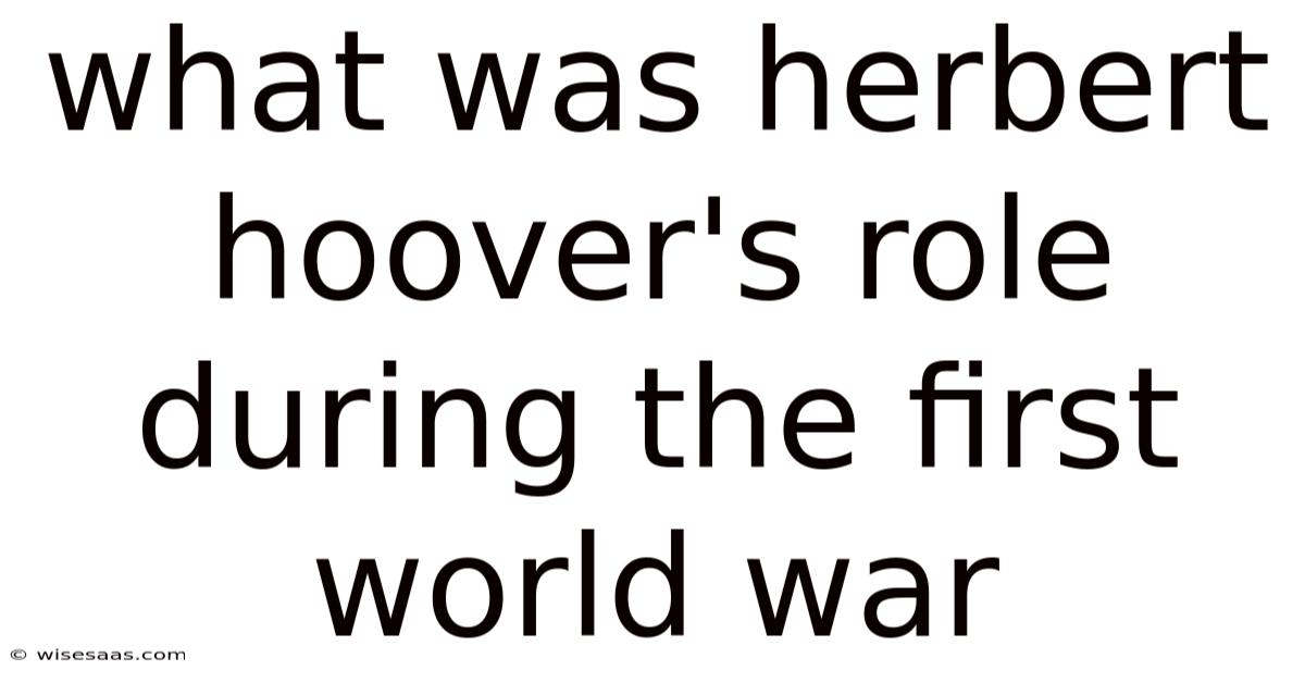 What Was Herbert Hoover's Role During The First World War