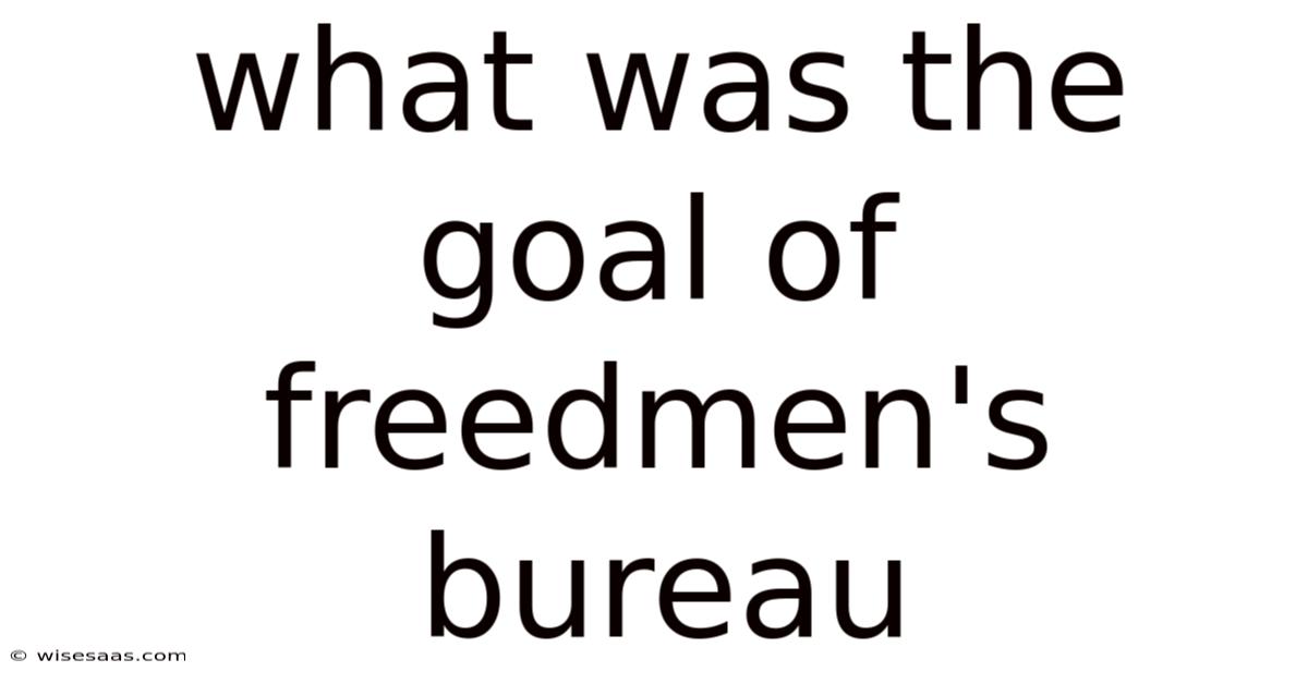 The goal of freedmen's bureau was multifaceted: to provide immediate humanitarian relief, to secure fair labor arrangements, to build an educational infrastructure, to protect legal rights, and to promote health