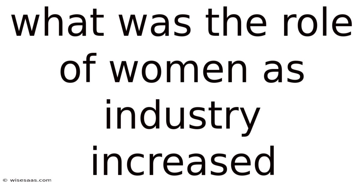 What Was The Role Of Women As Industry Increased