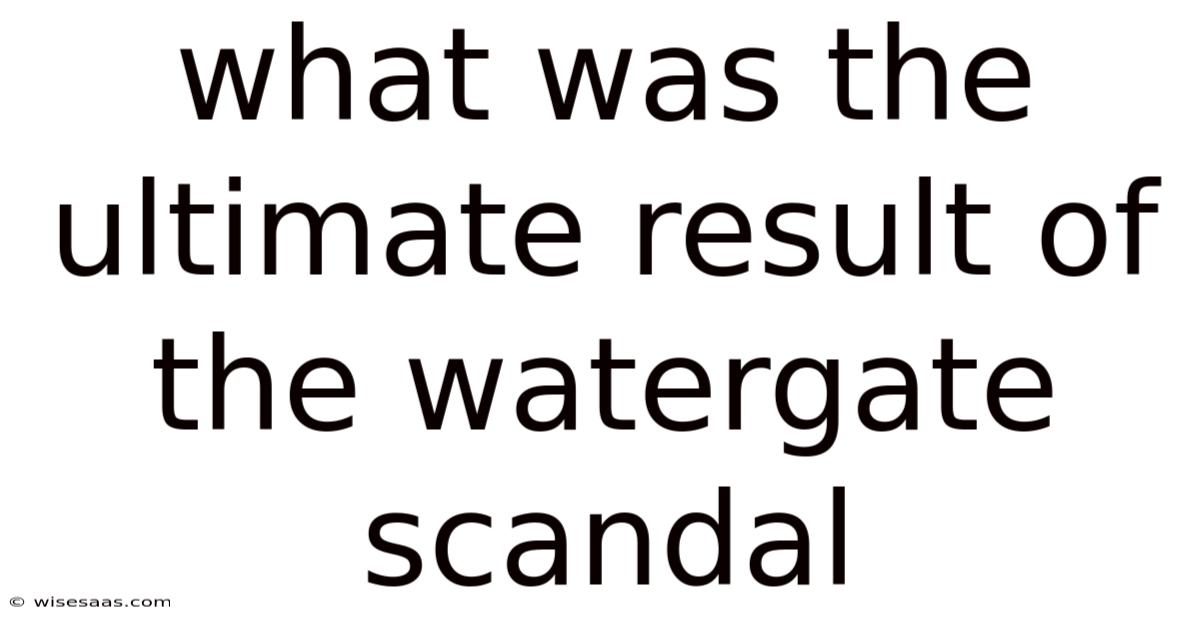 The ultimate result of the Watergate scandal was the resignation of President Richard Nixon, making him the first and only U.S. president to resign from office. This unprecedented event sent shockwaves through the American political system and had far-reaching consequences:
