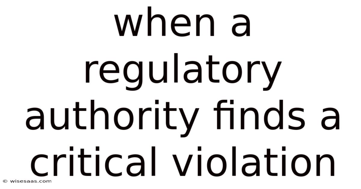 When a regulatory authority identifies a critical violation within an organization, it triggers a cascade of consequences that can affect operations, reputation, and financial stability. That said, critical violations represent serious breaches of legal requirements, often posing significant risks to public safety, environmental protection, or financial integrity. Think about it: these findings are not taken lightly by regulatory bodies, which have the authority to impose substantial penalties, including fines, sanctions, and even operational shutdowns. Understanding the implications of such violations and the proper response protocol is essential for any organization operating in a regulated environment.