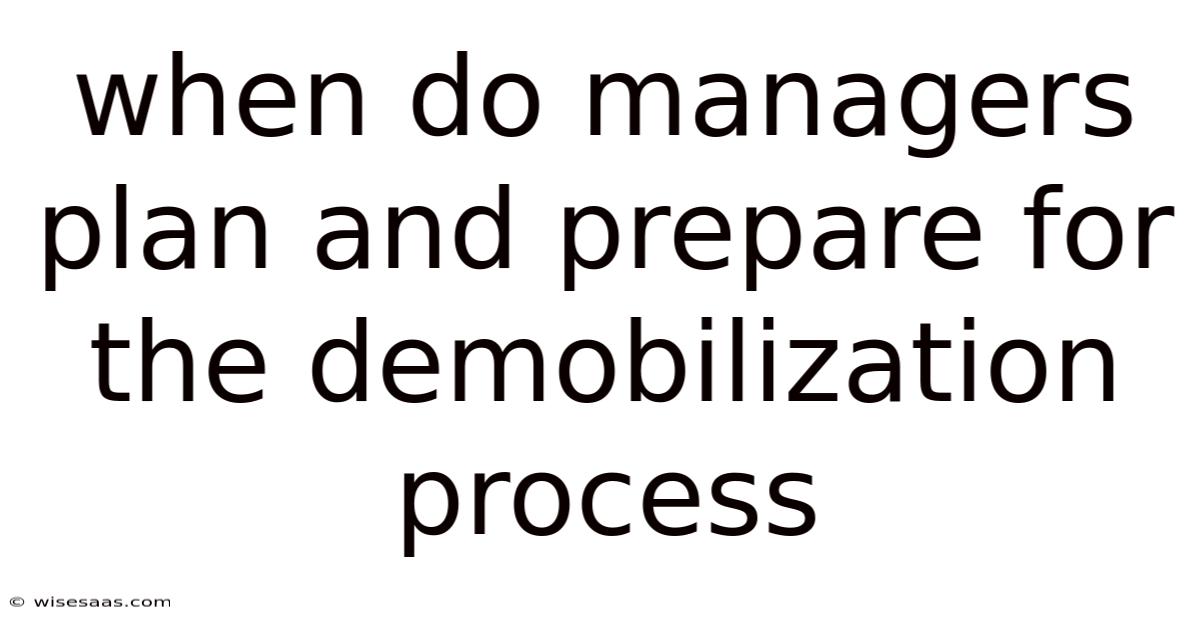 When Do Managers Plan And Prepare For The Demobilization Process