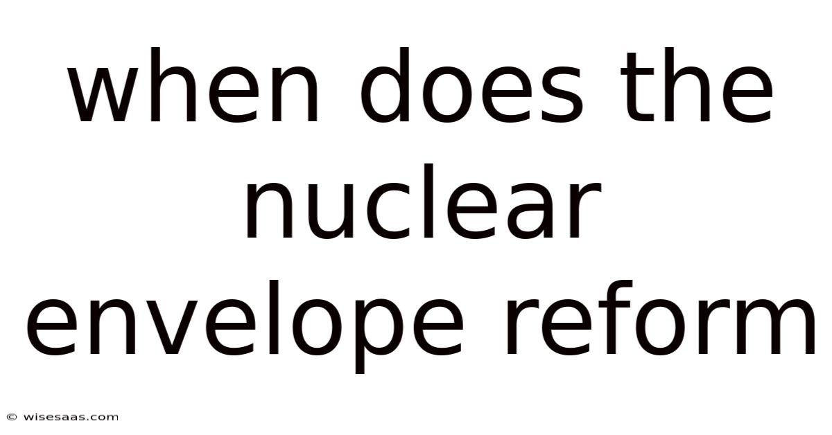 The nuclear envelope reformation is a critical process that occurs during cell division, specifically during the final stages of mitosis. This essential cellular event marks the reassembly of the nuclear membrane around separated chromosomes, effectively re-establishing the nucleus as a distinct compartment within the cell. Understanding when and how the nuclear envelope reforms provides crucial insights into cell biology, development, and disease mechanisms And it works..