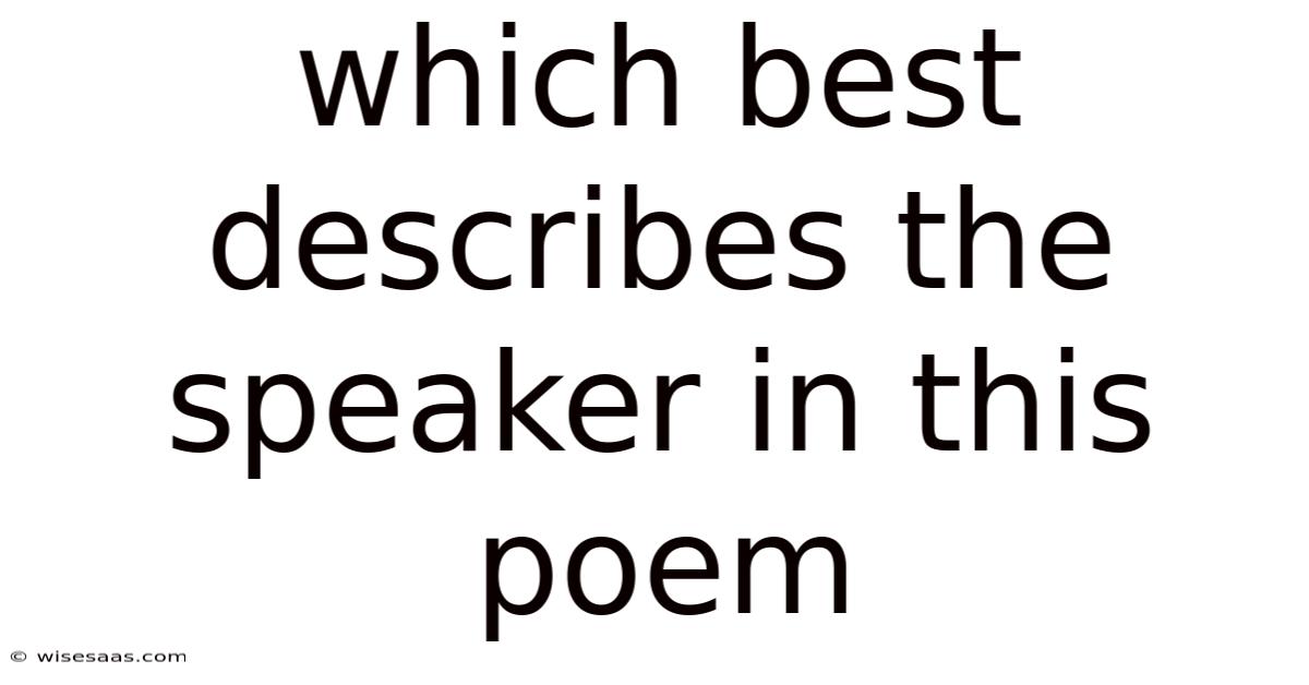 When analyzing poetry, the question which best describes the speaker in this poem often guides readers toward a deeper understanding of tone, perspective, and emotional nuance. Here's the thing — this article explores the concept of the poetic speaker, outlines the main categories that commonly describe poetic voices, and provides a step‑by‑step method for identifying the speaker that best fits a given poem. By the end, you will have a clear roadmap for answering that central question with confidence and analytical precision Simple as that..