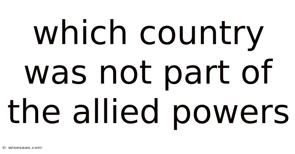 To answer the question of which country was not part of the Allied Powers, Make sure you first define what the Allied Powers were. It matters. The term refers to the coalition of nations that opposed the Central Powers—Germany, Austria-Hungary, the