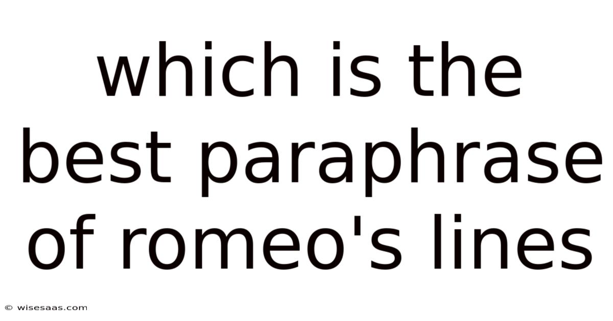 Whensearching for the best paraphrase of Romeo’s lines, readers often wonder which version preserves the original meaning while sounding natural in modern English. This article explores the most effective ways to reinterpret Shakespeare’s iconic dialogue, offering clear criteria, side‑by‑side comparisons, and a step‑by‑step guide to crafting your own compelling rendition. By the end, you’ll know exactly which paraphrase stands out for clarity, emotional impact, and linguistic flow That's the part that actually makes a difference..