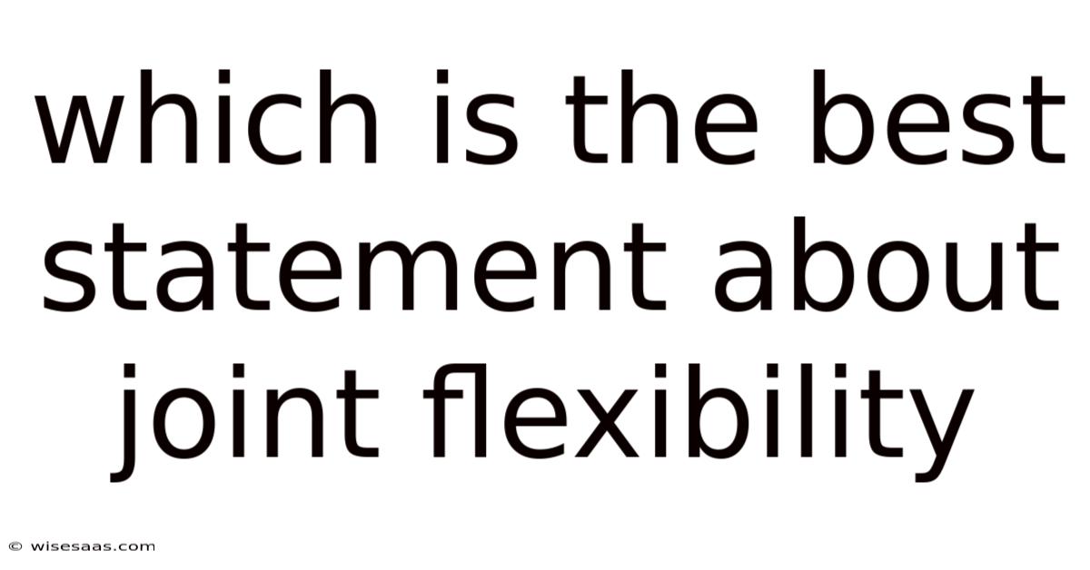 Determining the "best" statement about joint flexibility reveals that it's not a one-size-fits-all concept. ** Prioritizing ROM solely for aesthetic reasons or without regard for stability and strength can be counterproductive. Think about it: the goal should be achieving the right amount of flexibility – sufficient for safe, efficient, and pain-free movement in the activities you perform daily or competitively. Now, the simplistic claims of "more is always better" or "comfort is everything" are inadequate. The most accurate and practical understanding recognizes that **the optimal range of motion for any joint is defined by its specific functional requirements within the context of the individual's overall musculoskeletal health and neuromuscular control.This balanced approach, informed by an understanding of joint anatomy and function, leads to truly optimal physical well-being.