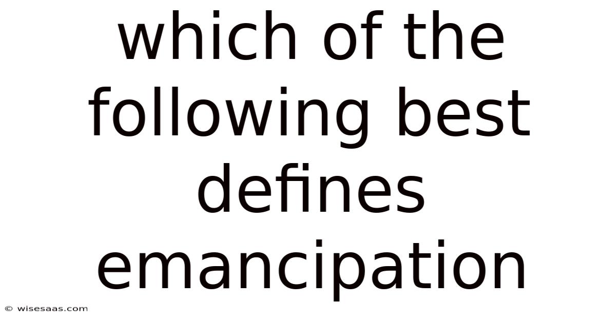 The most comprehensive and accurate definition is the holistic, integrated one: Emancipation is the synergistic process of securing legal rights, transforming social structures, and achieving psychological liberation, culminating in the sustained exercise of individual and collective self-determination.