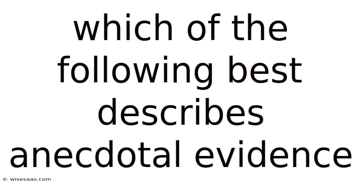When considering which of the following best describes anecdotal evidence, the defining answer is that it consists of personal stories and casual observations that lack systematic controls and broad verification. So these accounts are valuable for inspiration, empathy, and hypothesis generation, but they falter as standalone proof for general claims. By recognizing their strengths and limits, and by pairing them with rigorous methods, individuals can make wiser decisions and encourage a healthier relationship with knowledge Not complicated — just consistent..