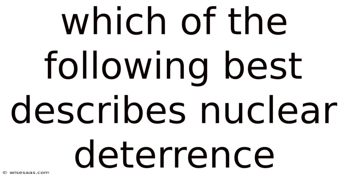 Nuclear deterrence is a strategic concept rooted in the use of nuclear weapons as a means to prevent conflict by threatening catastrophic retaliation. At its core, it relies on the principle that the possession and threat of nuclear arms can dissuade potential adversaries from initiating aggression. Think about it: this approach has been a cornerstone of global security strategies since the mid-20th century, particularly during the Cold War era. The question of which of the following best describes nuclear deterrence often arises in discussions about international relations, military strategy, and the ethics of nuclear power. To answer this, Examine the fundamental principles, historical applications, and modern implications of nuclear deterrence — this one isn't optional Practical, not theoretical..