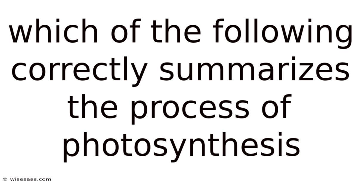 Which of the Following Correctly Summarizes the Process of Photosynthesis