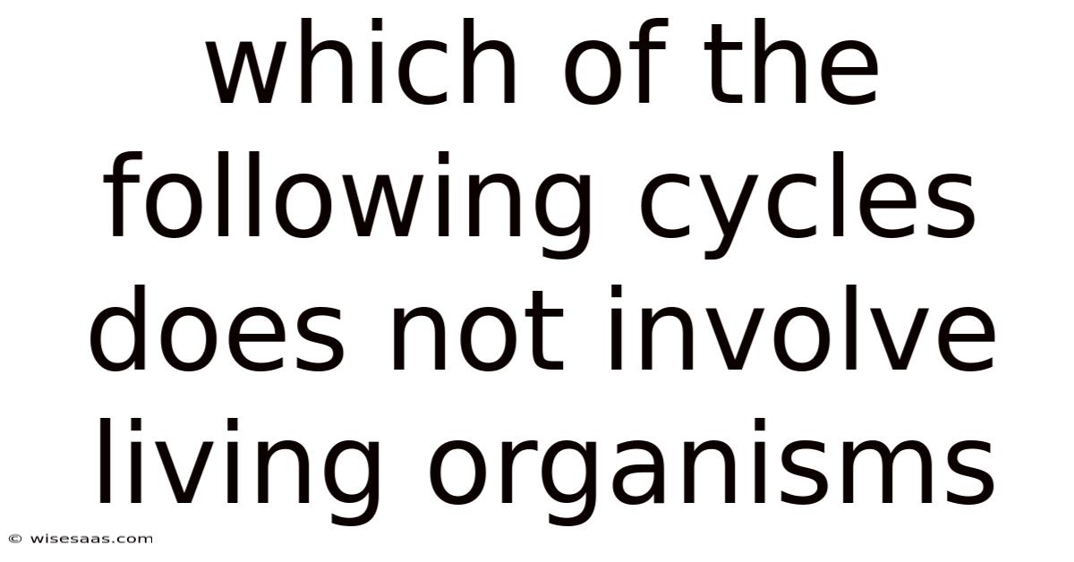 The layered dance of life on Earth unfolds within a framework that is as ancient as time itself, yet often overlooked in the grand tapestry of natural processes. Among the myriad systems that shape our planet, several stand out for their complexity and significance. Plus, this cycle, though fundamental to the functioning of ecosystems, operates beneath the surface, influencing the very foundation upon which all life depends. Day to day, understanding its nature requires a careful examination of the elements that compose it, revealing a pattern that is both profound and surprisingly simple in its essence. Which means yet among these, one cycle remains distinct from the others in its reliance on non-living components, a fact that challenges our perceptions of the interconnectedness that defines our world. As we delve deeper into this subject, we uncover a truth that resonates across disciplines: the realization that certain cycles are governed not by biological processes but by the physical and chemical transformations that occur around us, making them the subject of fascination and study for scientists, educators, and curious individuals alike Took long enough..