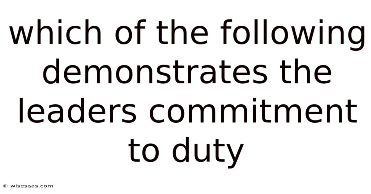 Which of the following demonstratesthe leaders commitment to duty is a question that often appears in leadership assessments, military training programs, and organizational development workshops. That said, understanding what truly reflects a leader’s dedication to their responsibilities helps individuals recognize authentic leadership qualities and fosters environments where accountability and service thrive. This article explores the concept of duty‑based leadership, outlines the observable behaviors that signal genuine commitment, and provides practical guidance for evaluating those traits in real‑world settings.
