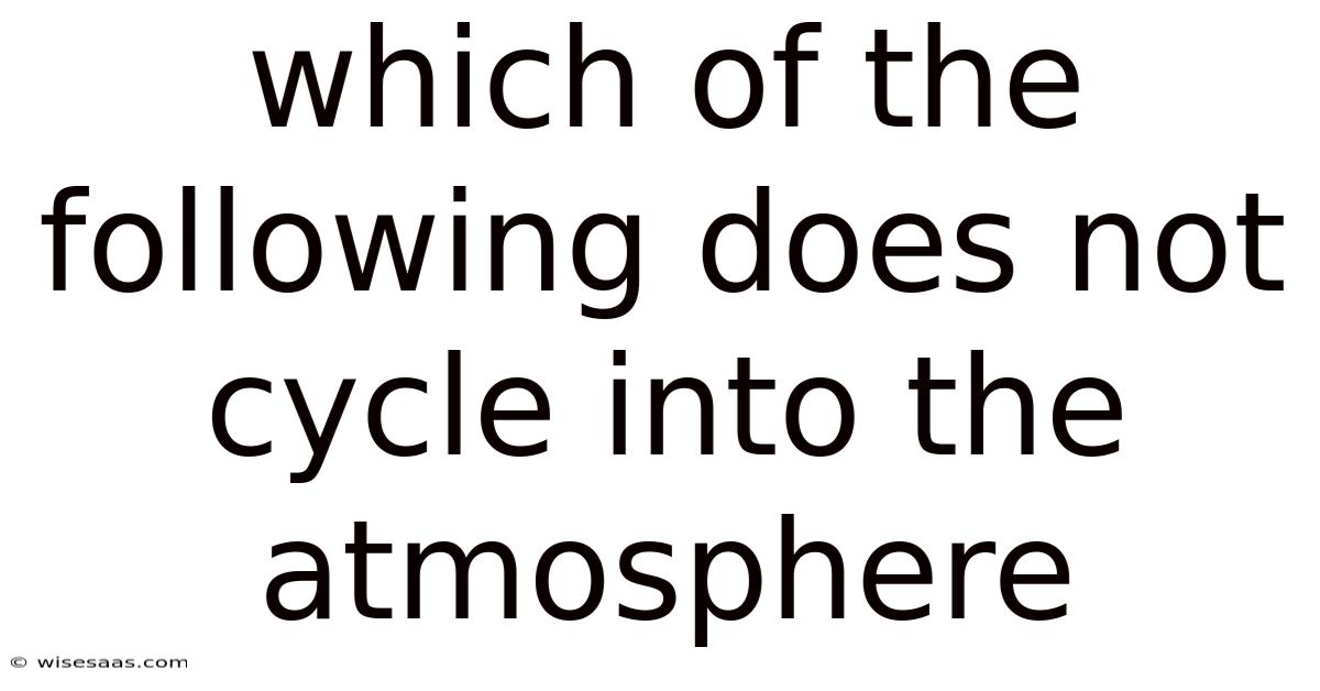 When textbooks present the phrase which of the following does not cycle into the atmosphere, they are usually referring to the major biogeochemical cycles that move elements like carbon, nitrogen, sulfur, and phosphorus through the lithosphere, hydrosphere, and biosphere. Which means these cycles can be visualized as pathways that transfer matter from one reservoir to another, sometimes passing through the air as a transient phase. While carbon, nitrogen, and sulfur frequently hitch a ride as gases (CO₂, N₂O, SO₂, etc.Plus, ), one element remains largely earth‑bound. Understanding this distinction is crucial for grasping ecosystem dynamics, climate change drivers, and the limits of natural recycling processes.