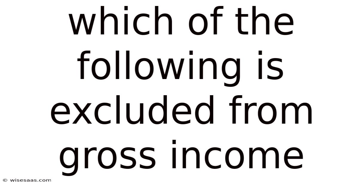 When compiling a list of which of the following is excluded from gross income, the "following" typically refers to the specific items listed in a tax form or a financial scenario. That said, based on the comprehensive analysis above, the most universally excluded items include: