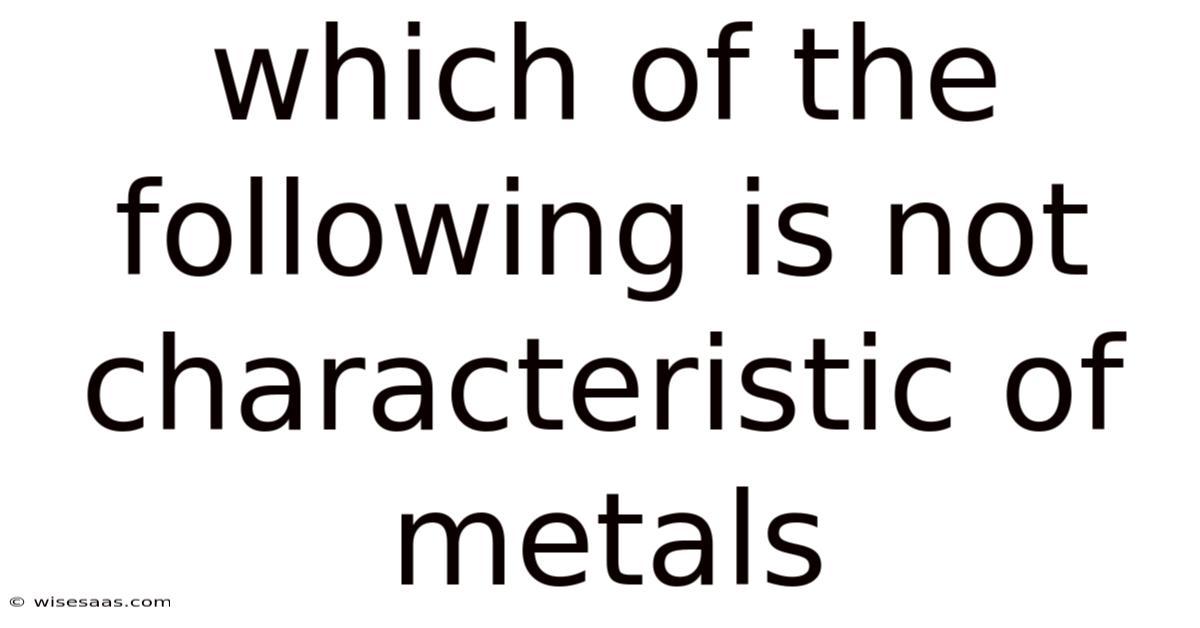 Which of the following isnot characteristic of metals is a question that often appears in chemistry quizzes, physics labs, and general science curricula. Understanding the answer requires a clear grasp of the defining properties of metallic elements, the ability to differentiate between similar‑looking traits, and the context in which those traits are evaluated. This article walks you through the essential attributes of metals, highlights common misconceptions, and pinpoints the specific characteristic that does not belong to this class of materials. By the end, you will be equipped to answer the query confidently and explain the reasoning behind it with scientific precision.