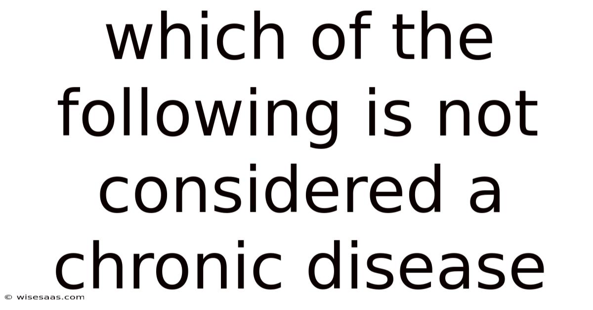 Whenexploring health classifications, many wonder which of the following is not considered a chronic disease and how to differentiate temporary conditions from long‑term illnesses. This question frequently appears in school quizzes, medical exams, and everyday conversations about wellness. Understanding the distinction helps people make informed decisions about prevention, management, and lifestyle choices. In this article we will break down the concept of chronic disease, examine common examples, and pinpoint the condition that does not belong in that category Small thing, real impact..