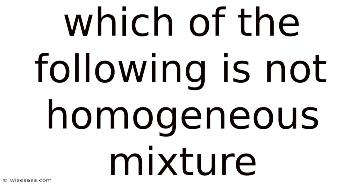 Understanding the difference between homogeneous and heterogeneous mixtures is essential for students because it underpins many laboratory techniques, industrial processes, and everyday observations. And this article will explore the concept in depth, examine typical answer choices, and clearly identify which of the following is not a homogeneous mixture. By the end, you will be able to classify mixtures confidently and explain the underlying principles with confidence And it works..