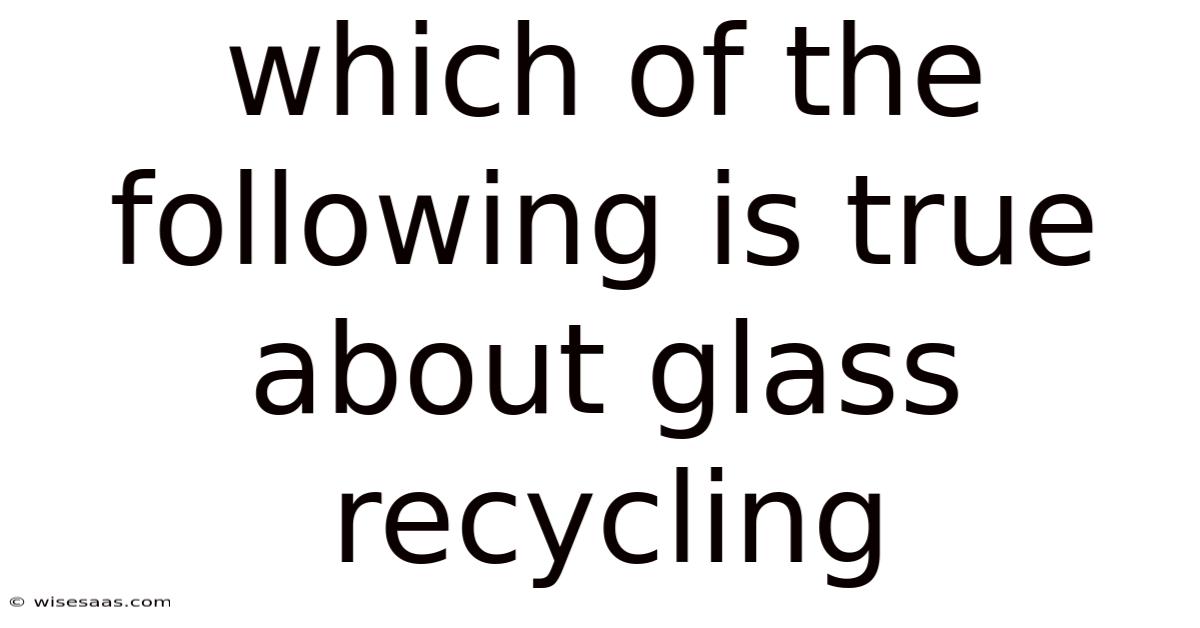 Glass recycling is often hailed as a straightforward environmental win, but a cloud of confusion and misinformation surrounds the process. Many people operate on assumptions that can undermine their best recycling intentions. The fundamental truth about glass recycling is both powerful and nuanced: glass is a uniquely sustainable material because it can be recycled infinitely without any loss in quality or purity, a property known as infinitely recyclable. On the flip side, achieving this ideal循环 requires specific conditions that are often not met in municipal collection systems. Understanding which statements about glass recycling are true is crucial for effective waste management and maximizing the environmental benefits of this remarkable material And that's really what it comes down to..