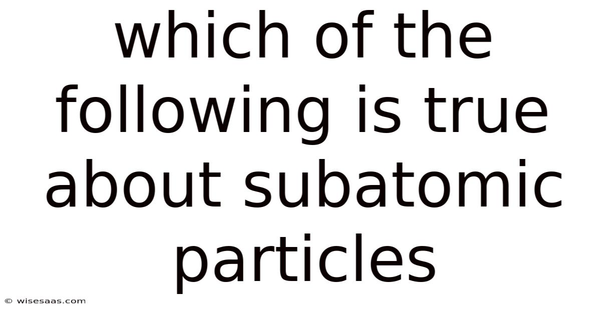 Subatomic particles represent the invisible architects of the universe, weaving the fabric of matter and energy that constitutes everything we perceive. This claim, though often misunderstood in its complexity, holds profound significance because protons, along with neutrons and electrons, collectively form the core components that define the structure and stability of matter. Among the myriad candidates for the "true" statement in this context, one emerges as a cornerstone of understanding: the assertion that protons are the fundamental building blocks of atomic nuclei. Despite their microscopic scale, their influence permeates the very laws governing physics, chemistry, and biology. Day to day, these entities, though intangible and imperceptible to the human eye, play central roles in shaping the behavior of atoms, molecules, and even the cosmos itself. Their consistent presence in all known atomic configurations underscores their centrality, yet the nuances surrounding their properties and interactions challenge even seasoned physicists. To grasp why this particular perspective is so compelling, one must look at the involved interplay of quantum mechanics, nuclear physics, and the very nature of existence itself Most people skip this — try not to..