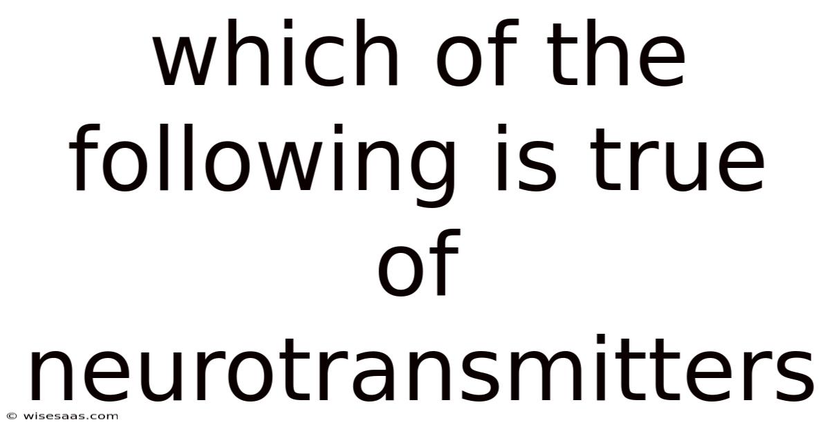 Considering the core principles outlined above, the statement "Neurotransmitters are chemical messengers that transmit signals between neurons across synapses" is unequivocally true. While other statements about their specificity, removal mechanisms, or diverse roles are also accurate, the core definition provided in this statement is the bedrock upon which all other knowledge about neurotransmitters is built. On the flip side, this captures their fundamental definition, mechanism of action, and essential role in neural communication. It distinguishes them from hormones, which travel through the bloodstream, and emphasizes their role in rapid, point-to-point signaling within the nervous system.