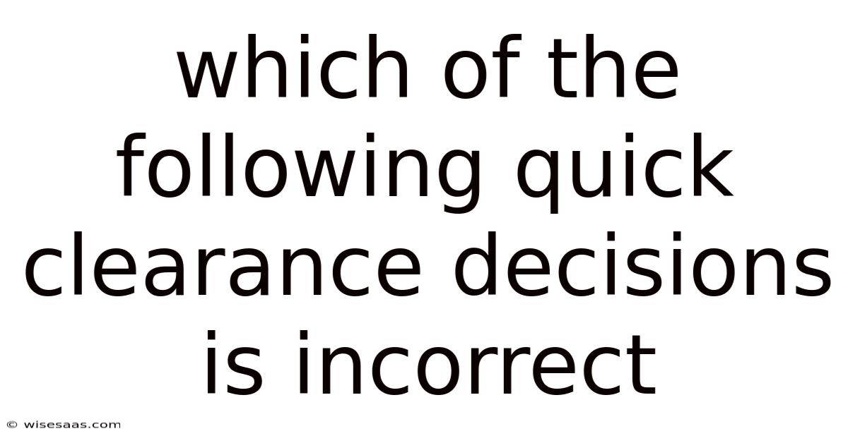Quick clearance decisions play a critical role in various industries and processes, from customs and healthcare to security and insurance. These decisions, when made correctly, streamline operations and improve efficiency. Still, when rushed or improperly evaluated, they can lead to serious consequences, including security risks, financial losses, and safety hazards. Understanding which quick clearance decisions are incorrect requires examining common scenarios across different sectors where such determinations are made That's the part that actually makes a difference..