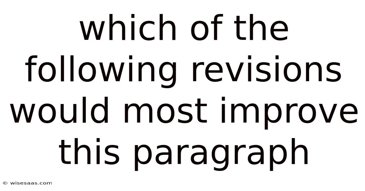 Effective writing is not born in a first draft but forged in the revision process. True improvement hinges on moving beyond surface-level grammar fixes to address deeper issues of clarity, coherence, and rhetorical power. While the specific "following revisions" are absent here, we can explore the universal principles that guide such decisions. Plus, " is a cornerstone of writing instruction, testing a writer's ability to diagnose issues and apply strategic fixes. In real terms, the question "which of the following revisions would most improve this paragraph? This article provides a comprehensive framework for evaluating and executing paragraph revisions, transforming weak writing into compelling, precise communication That's the part that actually makes a difference. No workaround needed..