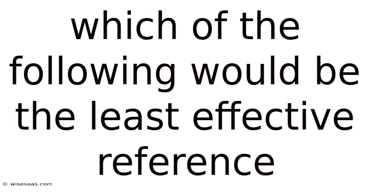 Selecting the least effective references requires vigilance against sources that are outdated, biased, unreliable, irrelevant, or lacking in scholarly rigor. These types of references undermine the credibility of your work by providing weak, questionable, or misleading evidence. Prioritizing current, objective, verifiable, relevant, and peer-reviewed sources is key for building a strong, trustworthy argument. By critically evaluating potential references against these criteria, you ensure your work stands on a solid foundation of reliable evidence, enhancing its academic integrity and its impact on your readers. Investing time in source evaluation is not merely a formality; it is the bedrock upon which credible and influential scholarship is built Not complicated — just consistent..