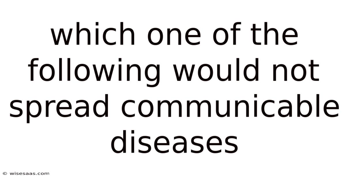 Communicable diseases, also known as infectious diseases, are illnesses caused by pathogens such as bacteria, viruses, fungi, or parasites that can be transmitted from one person to another or from animals to humans. These diseases spread through various means, including direct contact, contaminated surfaces, airborne particles, or vectors like insects. Understanding how these diseases spread is crucial for preventing their transmission and protecting public health. However, not all elements or actions contribute to the spread of communicable diseases. This article explores the concept of communicable diseases and identifies which of the following would not spread them, based on common scenarios and scientific principles.