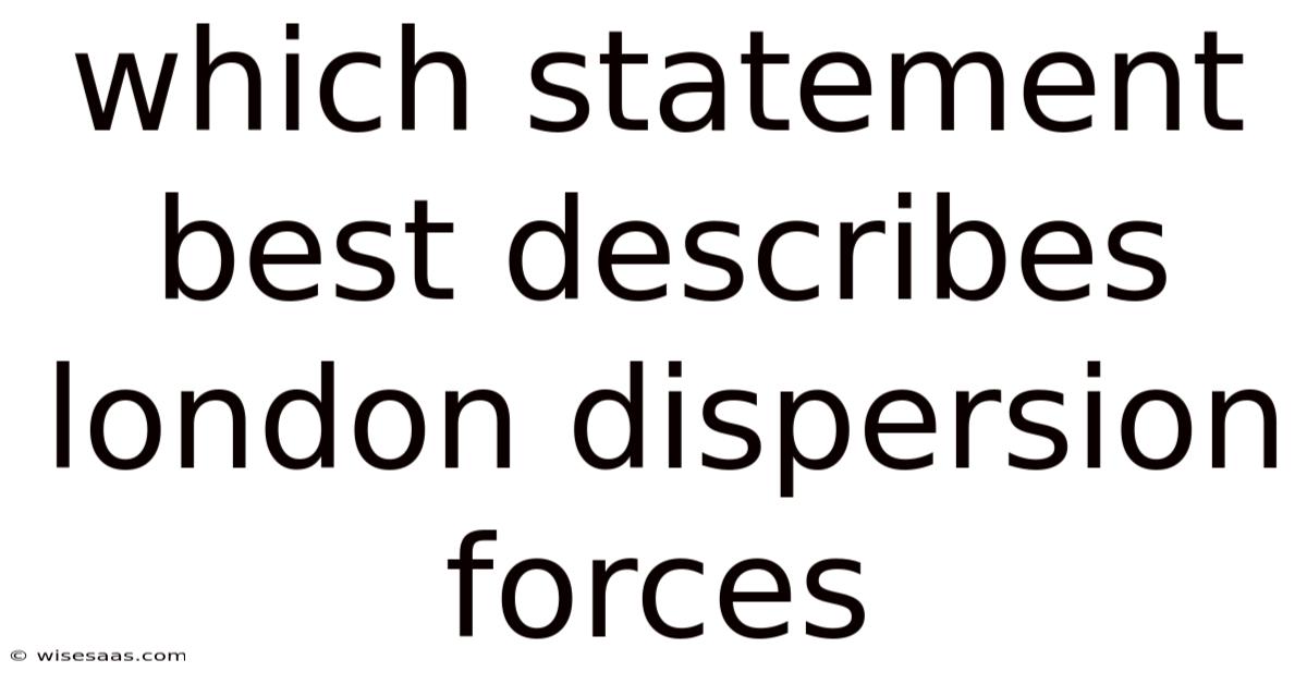 London dispersion forces are a fundamentaltype of intermolecular force that arise from temporary fluctuations in electron density, and they play a crucial role in determining the physical properties of non‑polar substances; understanding which statement best describes London dispersion forces helps students grasp why even molecules without permanent dipoles can attract one another.