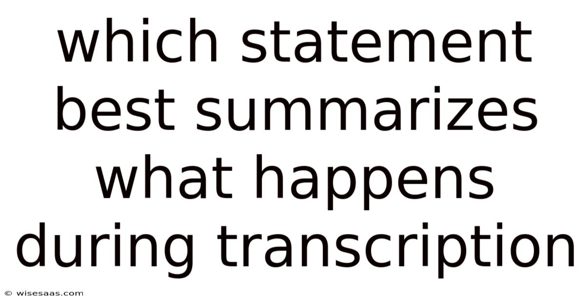 Understanding these distinctions helps clarify why the statement which statement best summarizes what happens during transcription? focuses on RNA synthesis rather than protein formation.