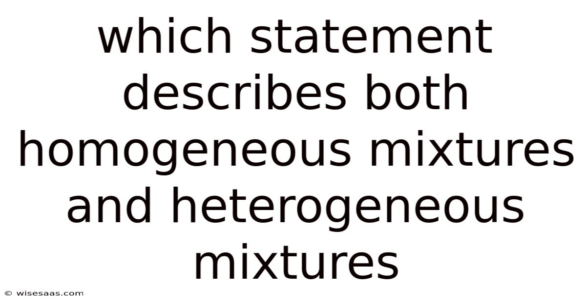 In this article, we will unravel the characteristics of homogeneous and heterogeneous mixtures, helping you understand which statement describes both types. We will look at the definitions, real-world examples, and practical implications of these mixtures. By the end of this discussion, you will have a clearer picture of how these concepts apply to both scientific studies and daily experiences.