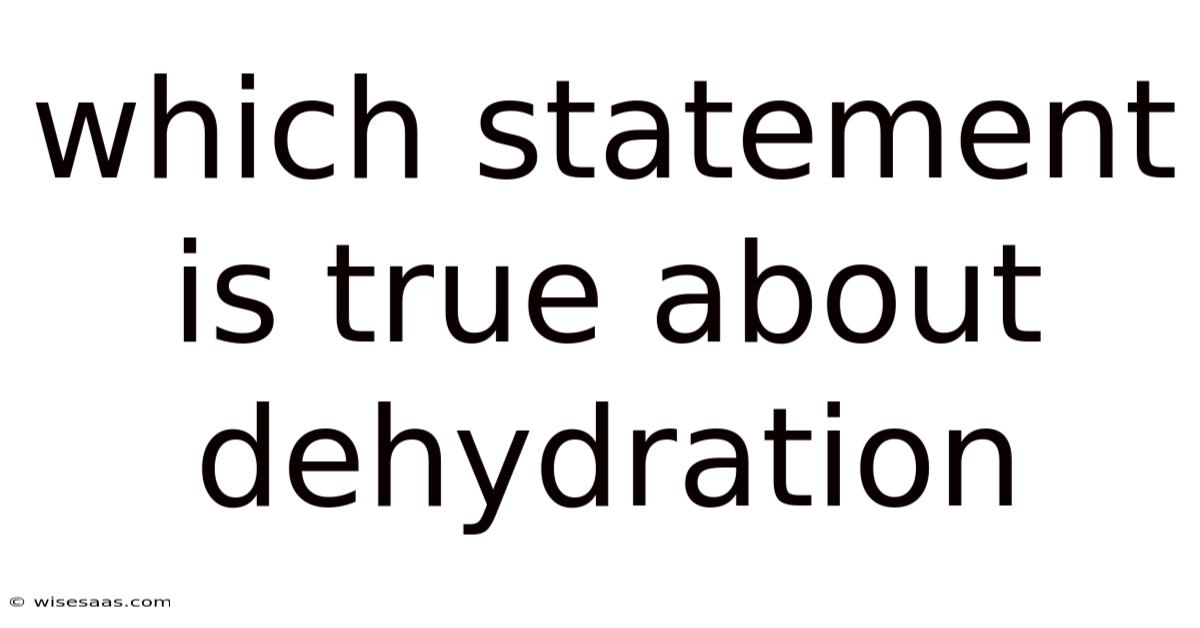 One true statement about dehydration is that it can occur due to various causes, not just from lack of water intake. On top of that, while not drinking enough fluids is a common cause, dehydration can also result from excessive sweating, vomiting, diarrhea, fever, or increased urination. So for instance, athletes who engage in intense physical activities in hot environments are at higher risk because they lose significant amounts of water and electrolytes through sweat. Similarly, illnesses that cause vomiting or diarrhea can rapidly deplete the body's fluid reserves, especially in young children and older adults And that's really what it comes down to..